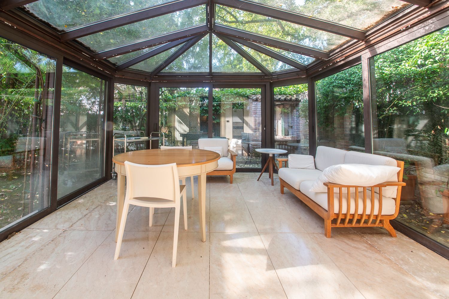Il casale in Vendita è stato completamente ristrutturato negli anni 2010, con doppi ingressi indipendenti e giardino privato di circa 300 mq, l'immobile è composto da ingresso salone doppio con vetrate ad arco antisfondamento e camino, bagno arredato con mobili di Philip Stark, cucina completamente arredata, ampia e abitabile, dispensa e uscita in meravigliosa veranda con riscaldamento, da poter usare anche d'inverno, con vetrate apribili confinanti con un meraviglioso giardino di proprietà esclusiva con patio e grande tavolo per poter mangiare all'aria aperta. Al piano superiore ci sono 2 camere matrimoniali con bagno e suite padronale con cabina armadio, bagno privato.